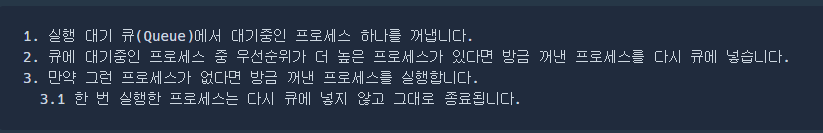 1. μ°μ μμκ° κ°μ₯ λμ νλ‘μΈμ€λ₯Ό μ°ΎμμΌ ν©λλ€. πμ°μ μμ νλ₯Ό νμ© O(logn)νμ¬ κ΅¬ν μ μμ΅λλ€.